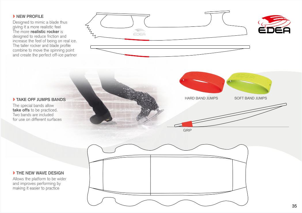 Es una sencilla tableta de nailon que simula los apoyos del patinaje, da las mismas sensaciones y se mueve como un patín.